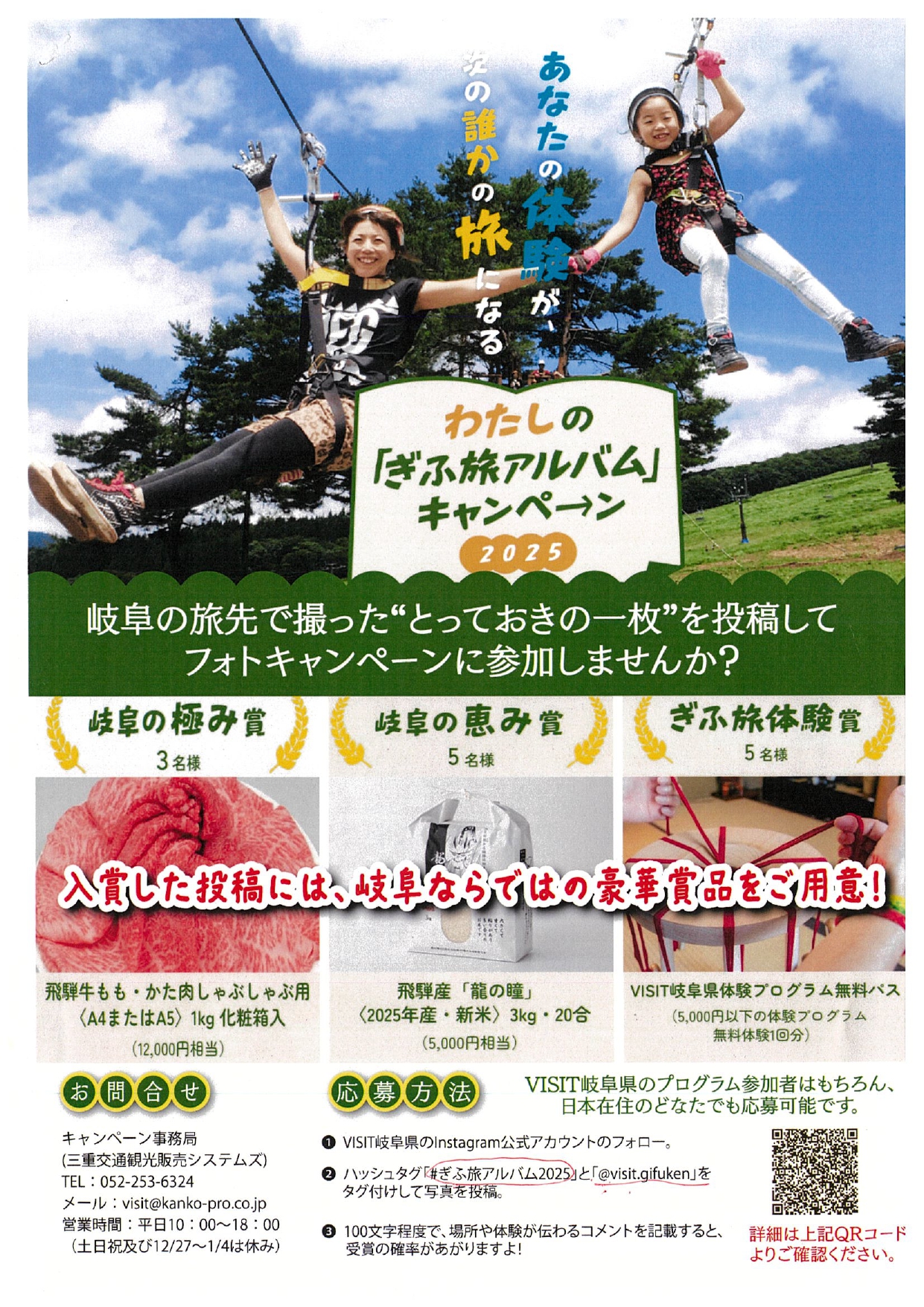 岐阜の旅先で撮った写真を投稿して岐阜ならではの豪華景品をゲットしてみませんか。