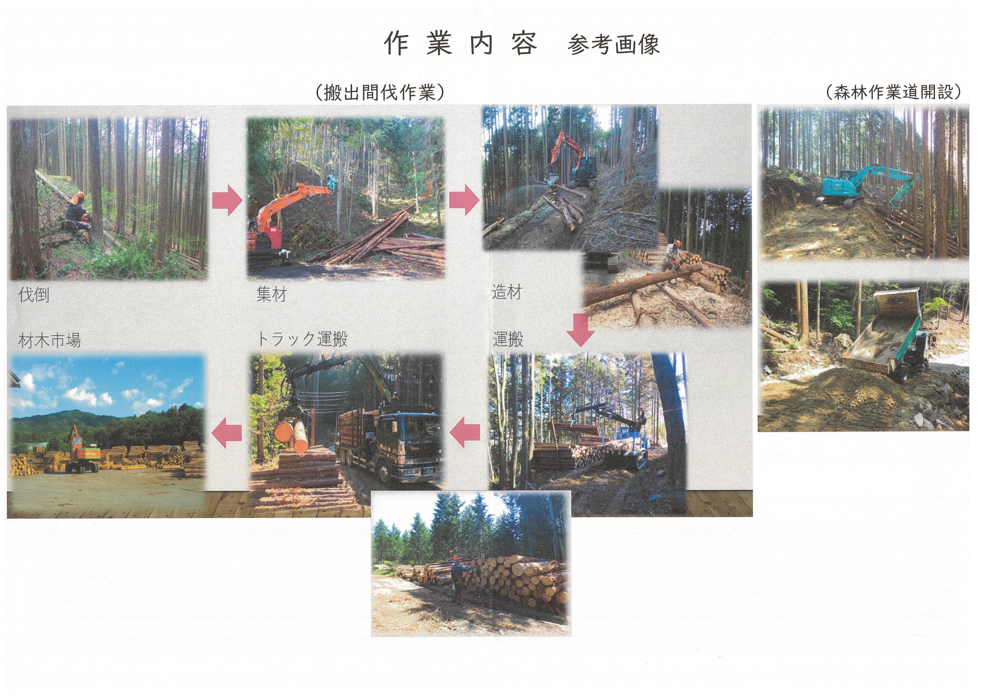 予定期間 ①令和8年4月6日より令和8年7月下旬(間伐と搬出)