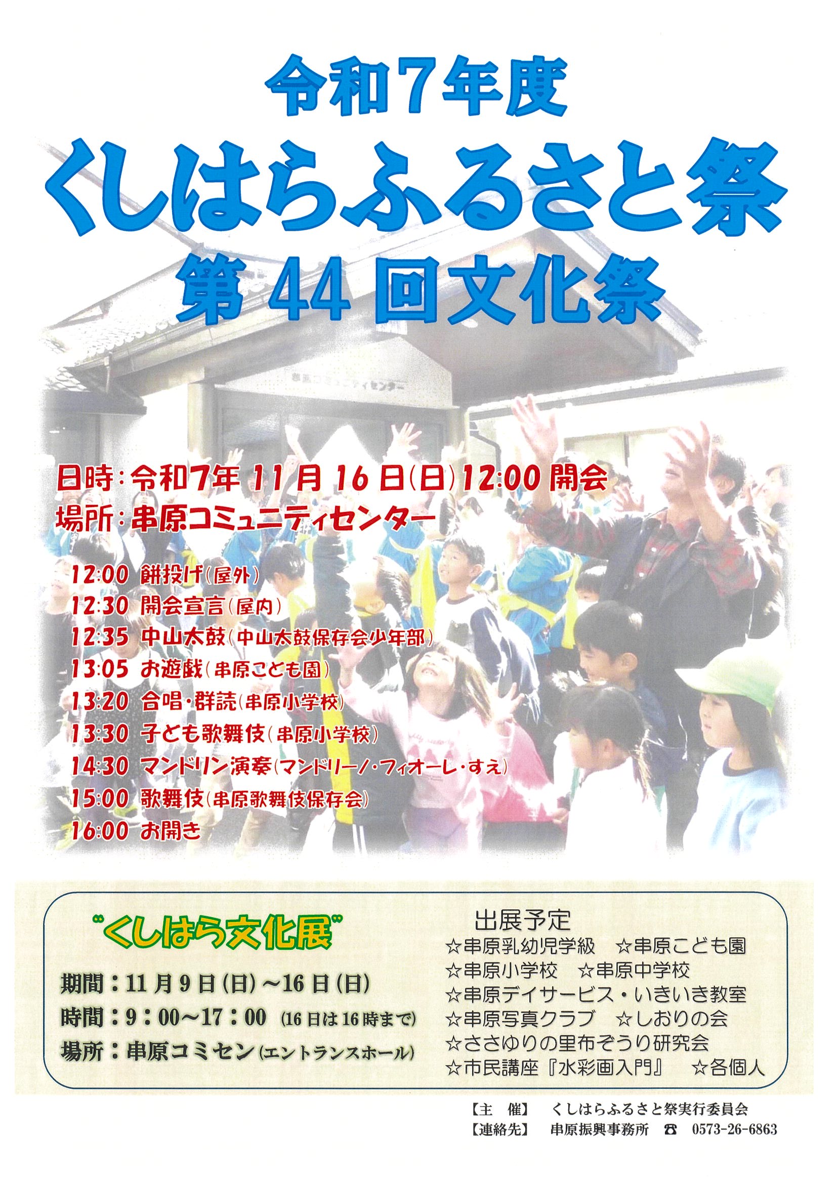 毎年11月第3日曜日に串原コミュニティセンターにて開催されます。