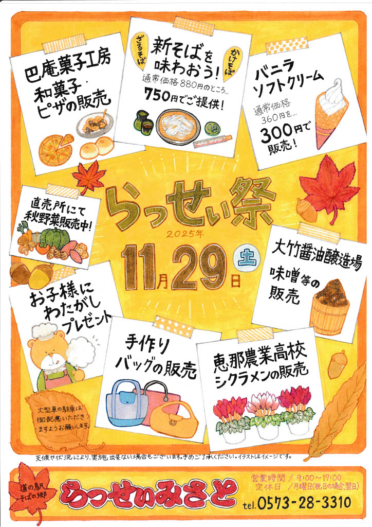 | お問い合わせ先 | 道の駅 そばの郷 らっせぃみさと |