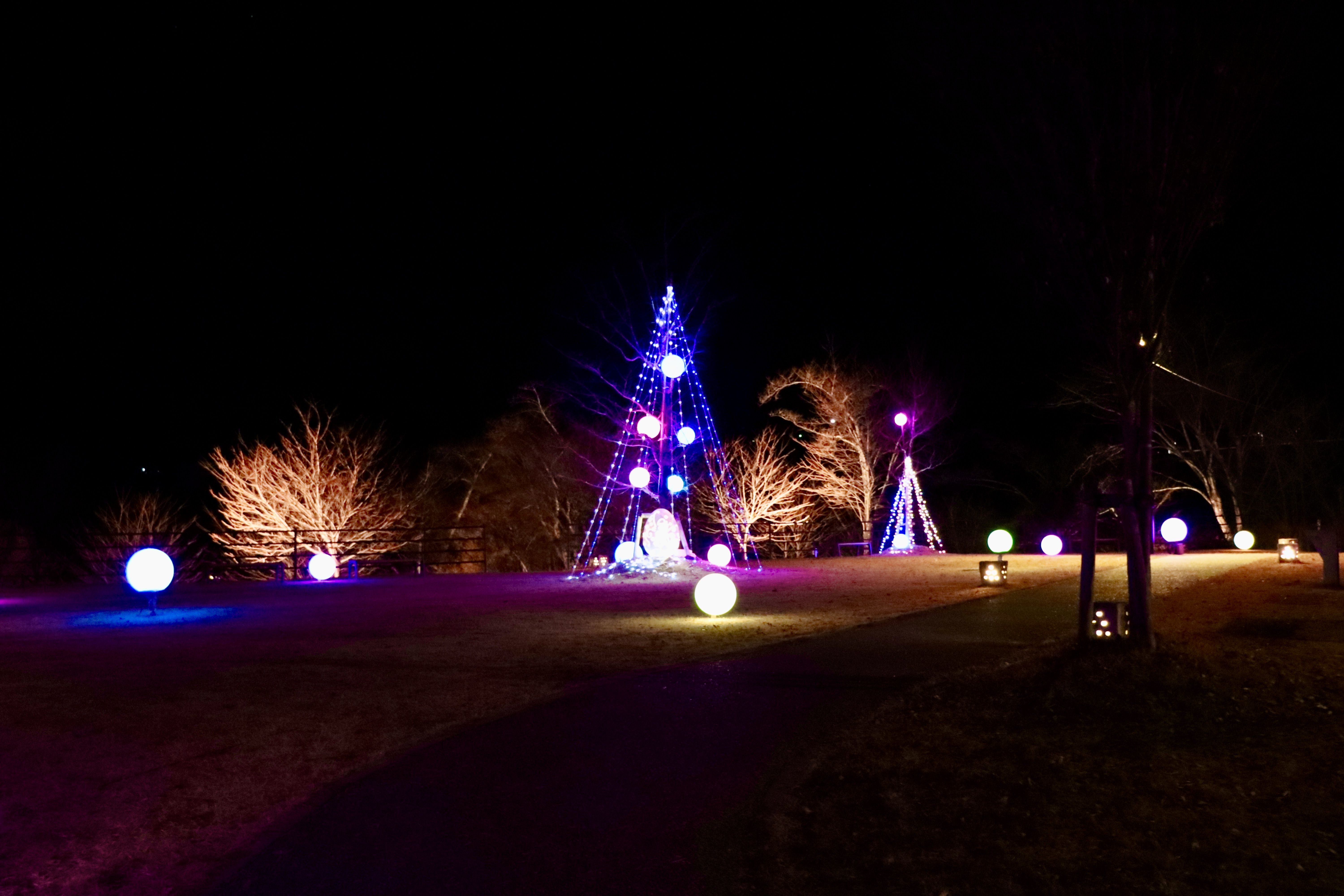桃介広場に「ツリー」2本と、東屋に「つららライト」、「光るボールライト」を25基設置