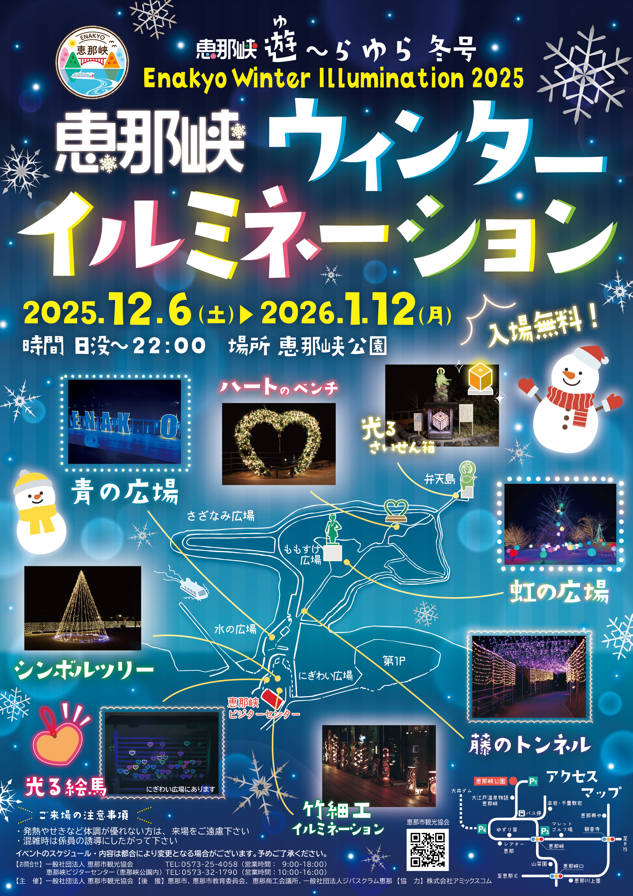 令和7年12月6日(土)~令和8年1月12日(月)にかけて、恵那峡ウインターイルミネーションを開催いたします。点灯時間は、期間中毎日、日没から午後10時00分までです。