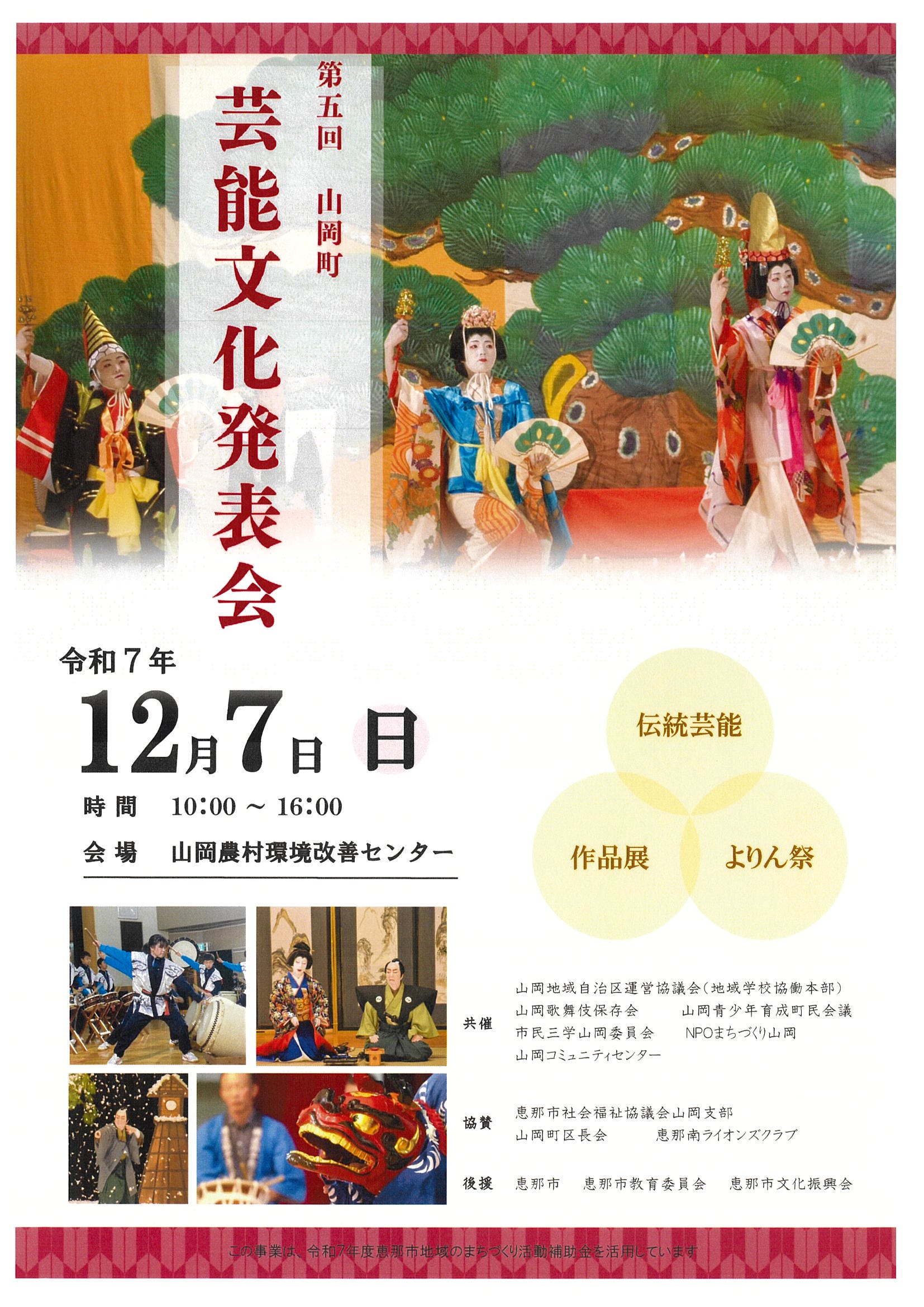 発表会の舞台では、獅子舞いや歌舞伎から山岡こども園園児のお遊戯・小学生の演舞、中学生の和太鼓などゆっくりとお楽しみください。